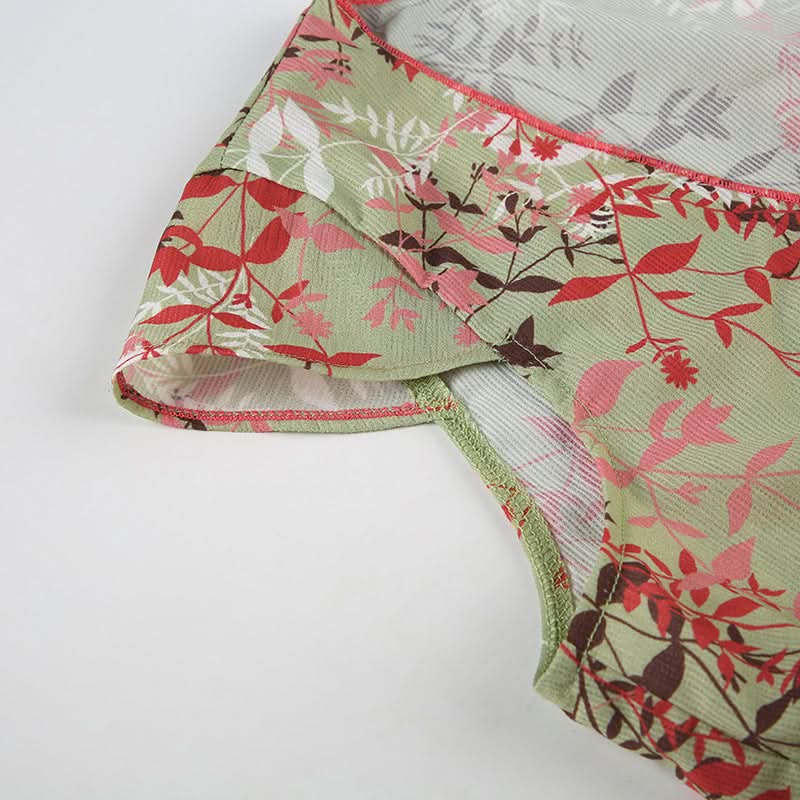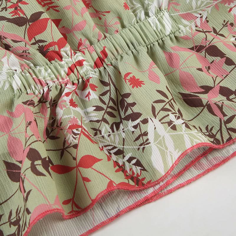 Ruched v neck self tie cap sleeve print top
