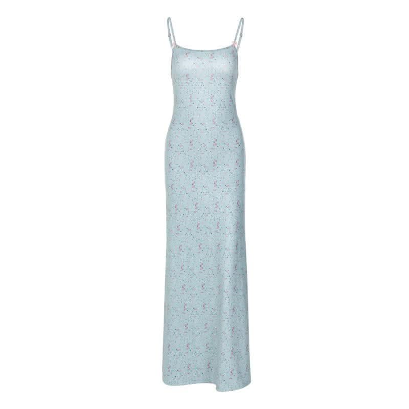Flower print square neck contrast backless cami maxi dress-final-sale