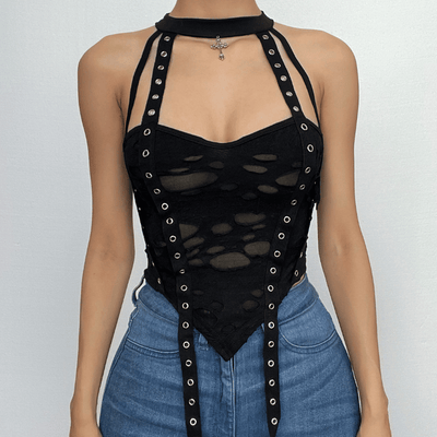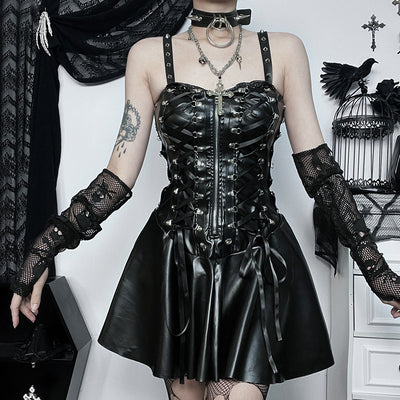 Mesh zip-up halter ruched slit irregular low cut 3-way dress