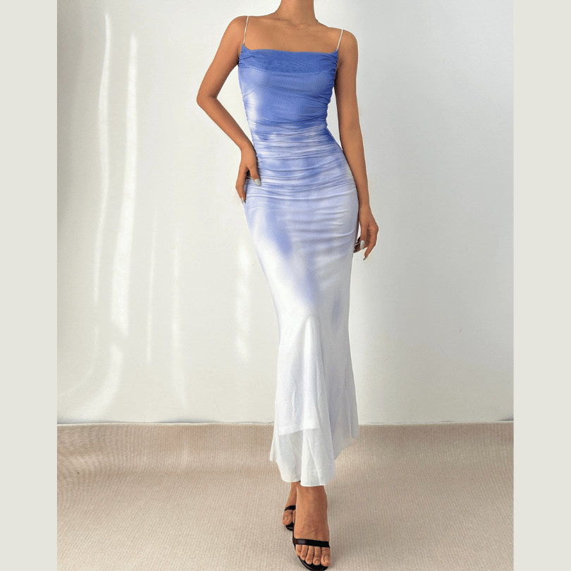 Gradient mesh ruched cami maxi dress | Festival Outfits Women