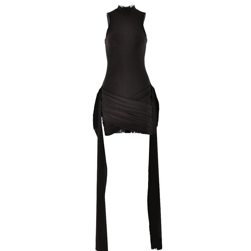 High neck ruffle ruched solid mini dress | Festival Outfits Women