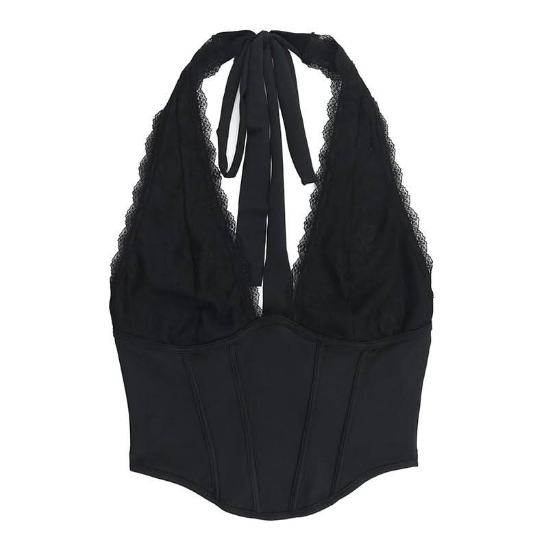 Halter self tie lace hem deep V neck corset top | Festival Outfits Women