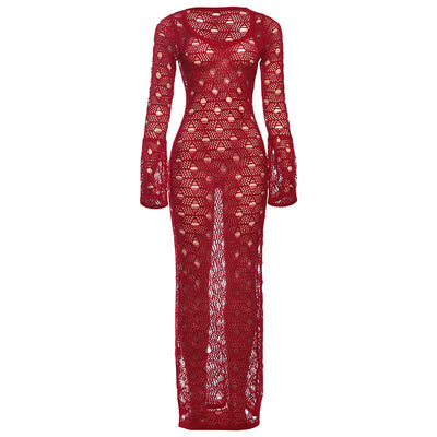 Textured long sleeve off shoulder hollow out cut out mini dress