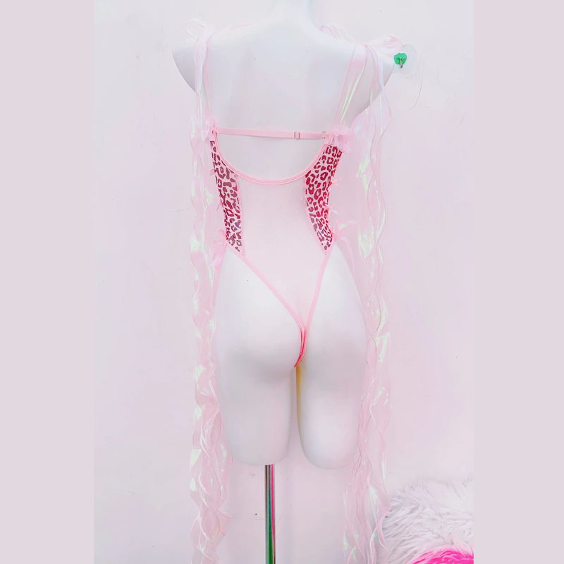 Leopard print bowknot cross applique cami bodysuit