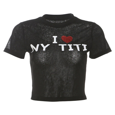 Short sleeve letter print crewneck top