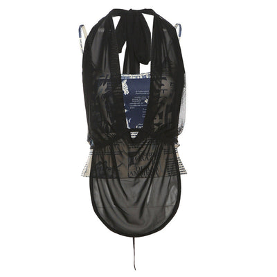 Halter print mesh self tie 2 piece cami top