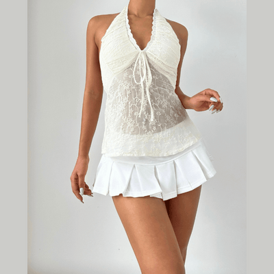 Halter v neck lace hem smocked top