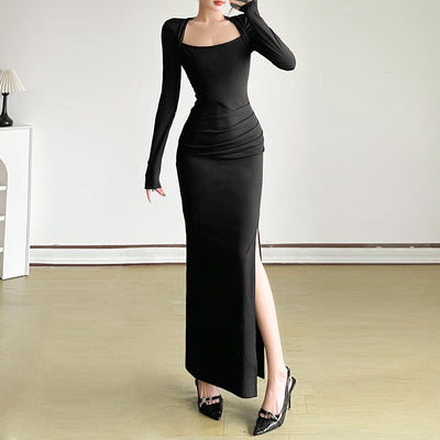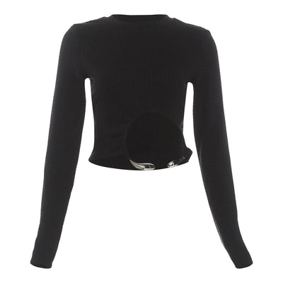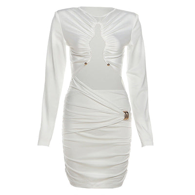 Long sleeve hollow out ruched crewneck cut out mini dress
