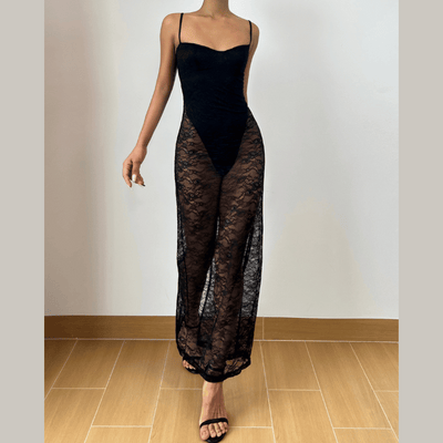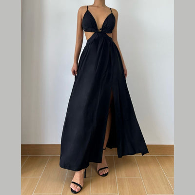 Hollow out deep v neck zip-up slit cami cut out maxi dress