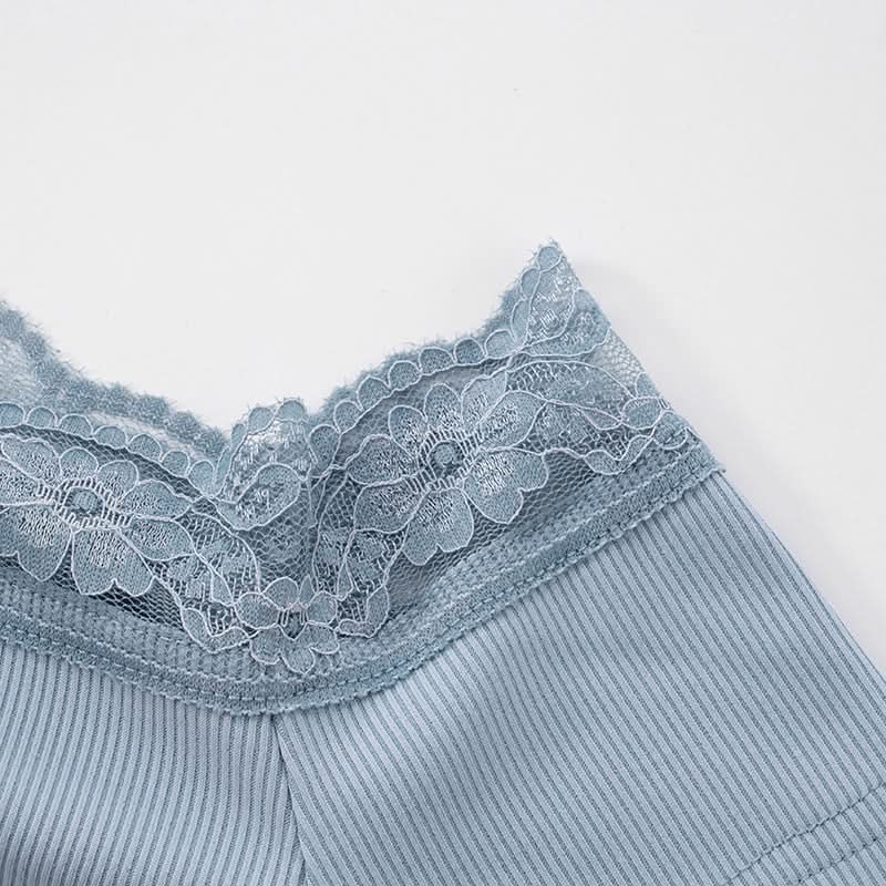 Off shoulder lace hem ruched ribbed top