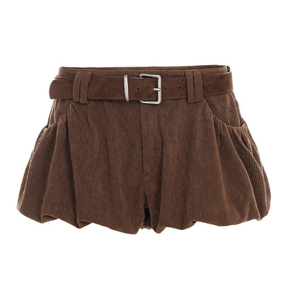 Fluffy low rise belt solid denim shorts without sweetheart applique