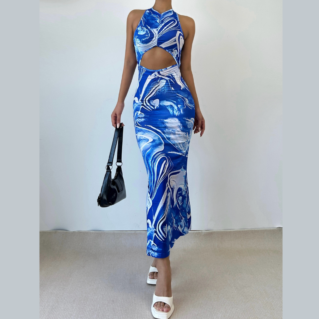 Cross back hollow out ruched print cut out maxi dress | Festival Outfits Women