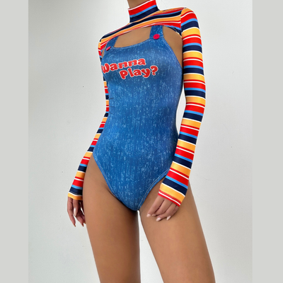 Long sleeve high neck letter pattern 2 piece bodysuit