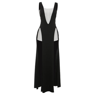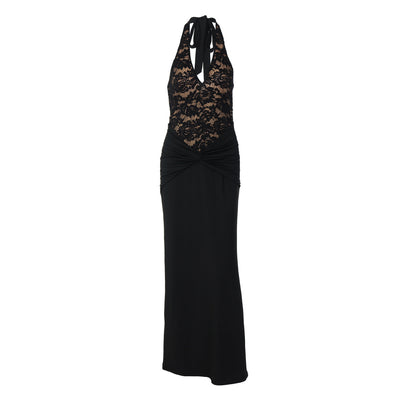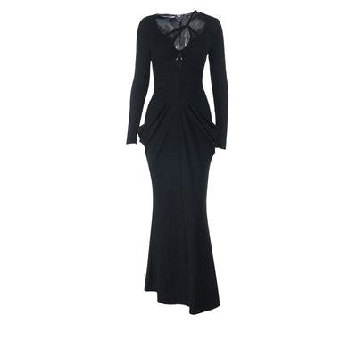 Long sleeve lace hem hollow out ruched cut out maxi dress