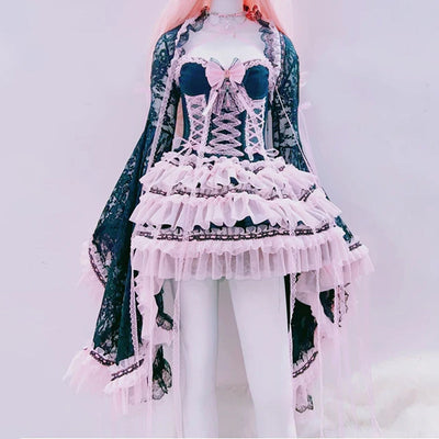 Off shoulder long sleeve lace corset lace up 2 piece mini dress