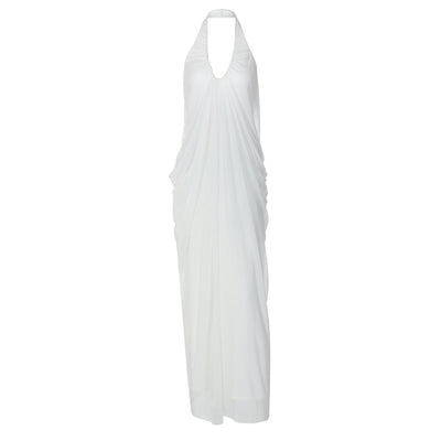 Long sleeve hollow out ruched zip-up cut out maxi dress