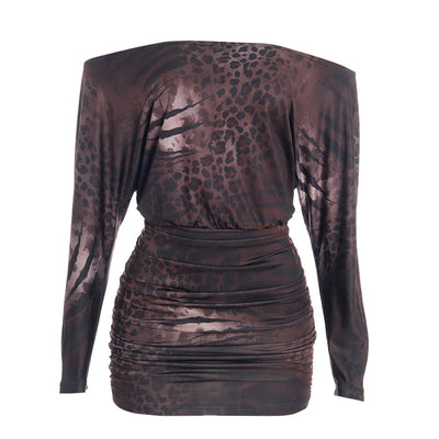 Long sleeve hoodie PU leather halter zip-up 2 piece mini dress
