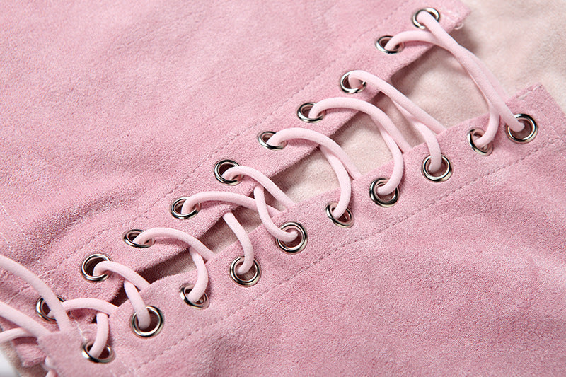 Halter lace up fluffy top
