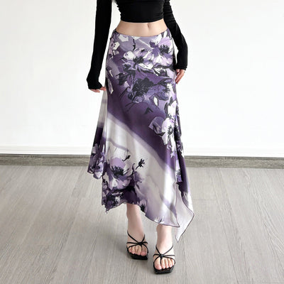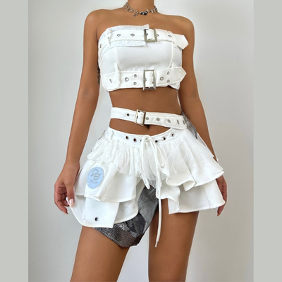 Metal chain pleated butterfly pattern irregular mini skirt set