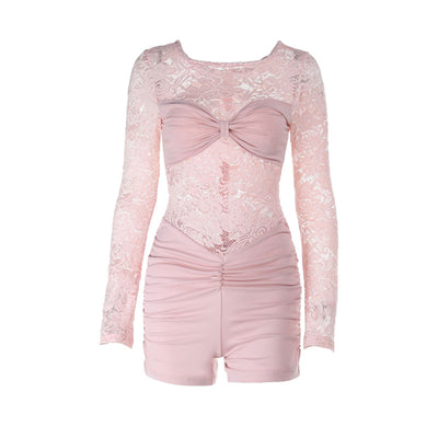 Self tie v neck zip-up lace v neck cami jumpsuit