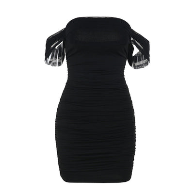 Long sleeve hollow out one shoulder ruched cut out mini dress