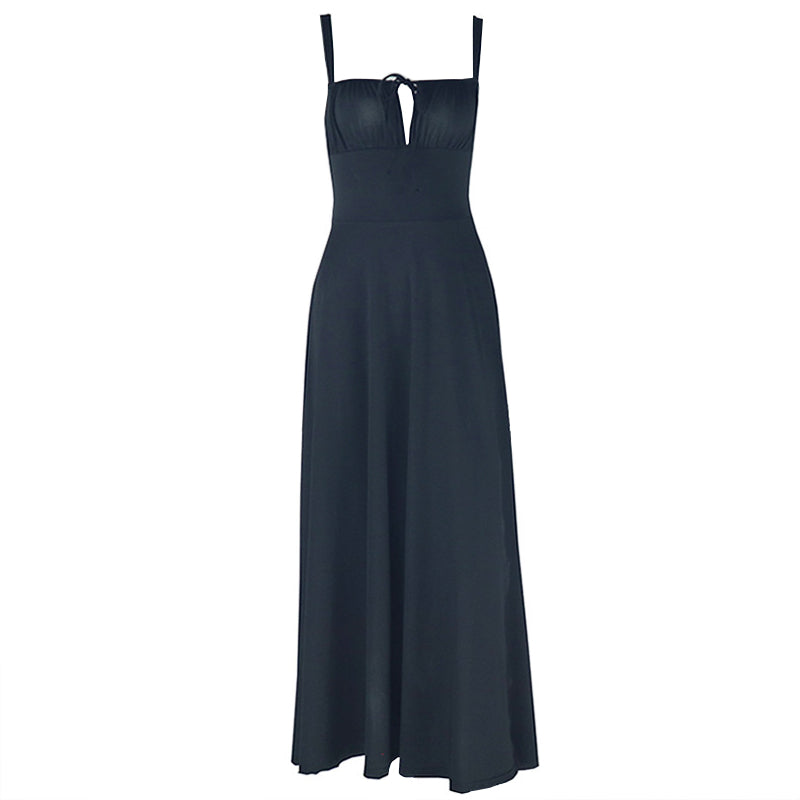 Square neck hollow out self tie cami cut out maxi dress
