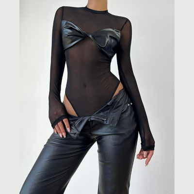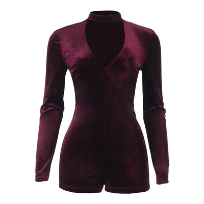 Gloves long sleeve crewneck zip-up solid jumpsuit