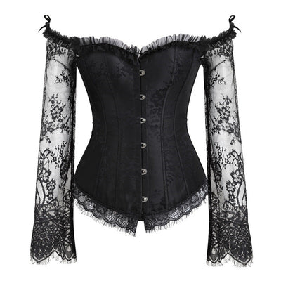 Long sleeve off shoulder corset button lace up top