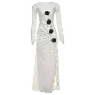 Long sleeve one shoulder hollow out ruched cut out maxi dress