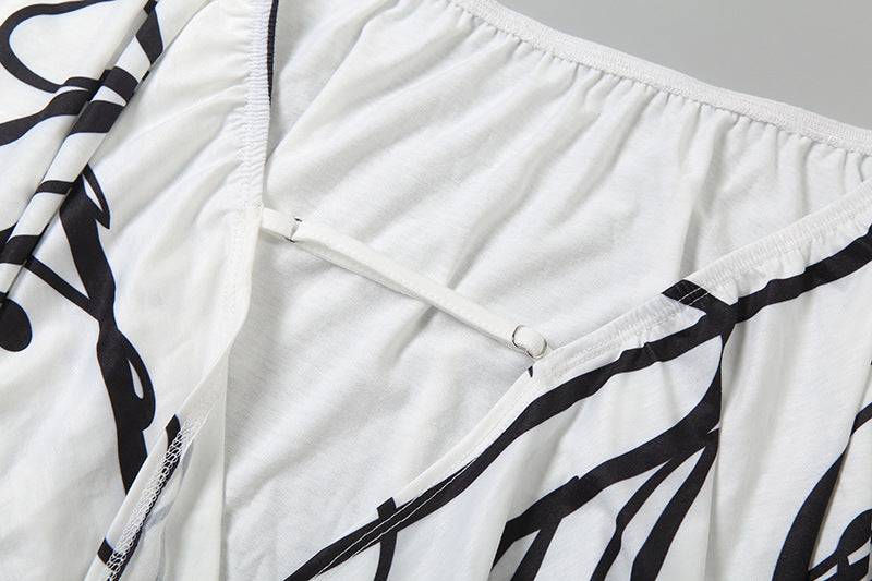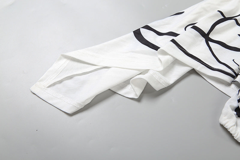 Irregular off shoulder print self tie crop top