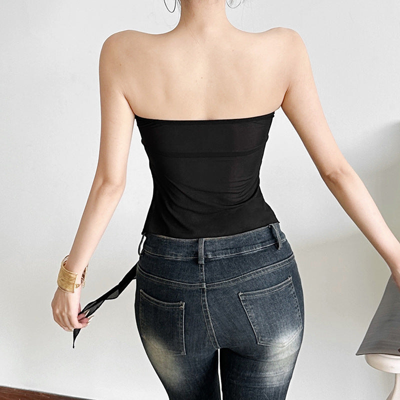 Sweetheart neck ruched solid tube top