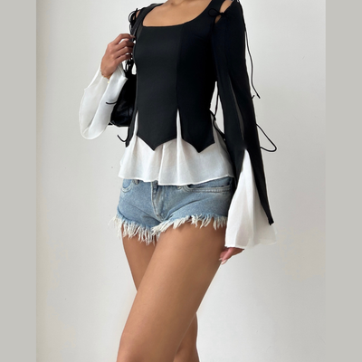 Long sleeve ruched 2 piece hollow out cut out top