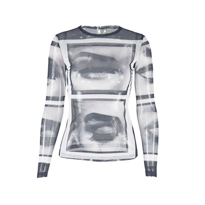 Long sleeve abstract crewneck mesh top