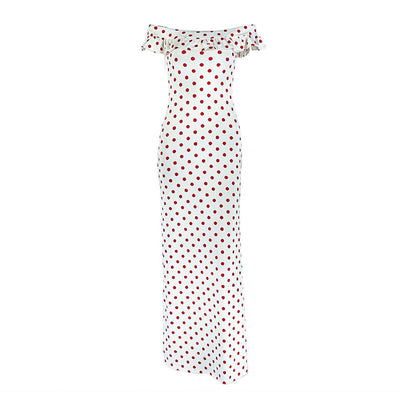 Off shoulder polka dot mesh maxi dress