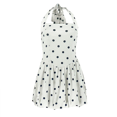 Halter polka dot backless mini dress