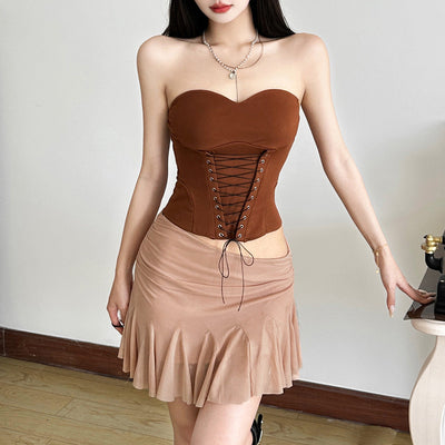Lace up sweetheart neck zip-up corset top