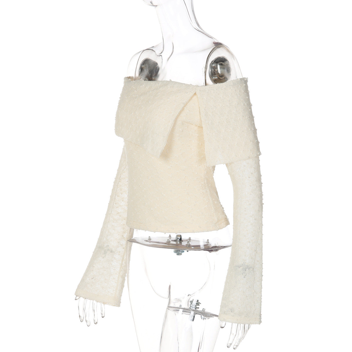 Off shoulder long sleeve irregular backless top