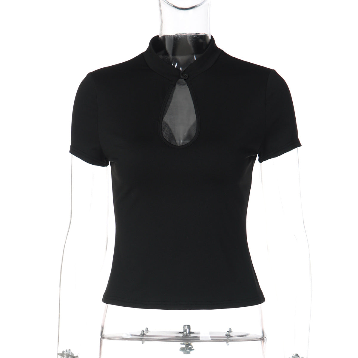 {"id":53648398385462,"title":"Black \/ S","option1":"Black","option2":"S","option3":null,"sku":"T5C20753A-BK-S","requires_shipping":true,"taxable":false,"featured_image":{"id":57484496503094,"product_id":10579949355318,"position":1,"created_at":"2026-02-04T04:16:53-04:00","updated_at":"2026-02-04T04:16:55-04:00","alt":null,"width":1200,"height":1200,"src":"\/\/halibuyfashion.com\/cdn\/shop\/files\/1772035645831gpb_1770013935204.jpg?v=1770193015","variant_ids":[53648398385462,53648398418230,53648398450998]},"available":true,"name":"Short sleeve hollow out button solid top - Black \/ S","public_title":"Black \/ S","options":["Black","S"],"price":1699,"weight":150,"compare_at_price":null,"inventory_management":"shopify","barcode":null,"featured_media":{"alt":null,"id":47307969200438,"position":1,"preview_image":{"aspect_ratio":1.0,"height":1200,"width":1200,"src":"\/\/halibuyfashion.com\/cdn\/shop\/files\/1772035645831gpb_1770013935204.jpg?v=1770193015"}},"requires_selling_plan":false,"selling_plan_allocations":[]}