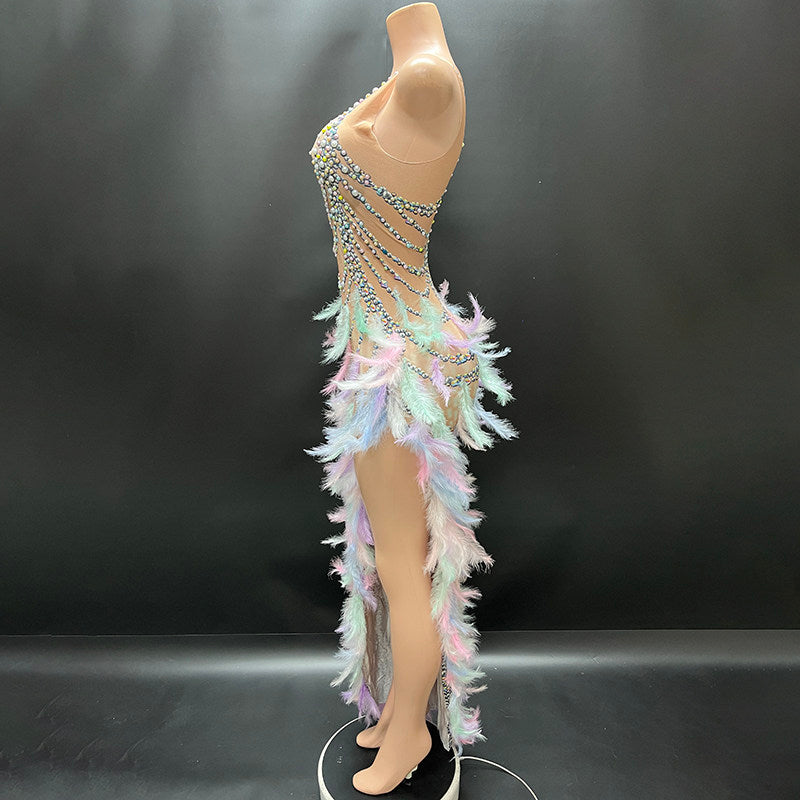 Feather irregular round neck zip-up print midi dress | Festival Outfits Women