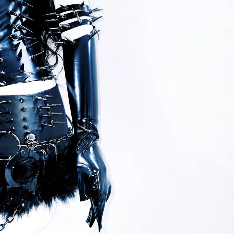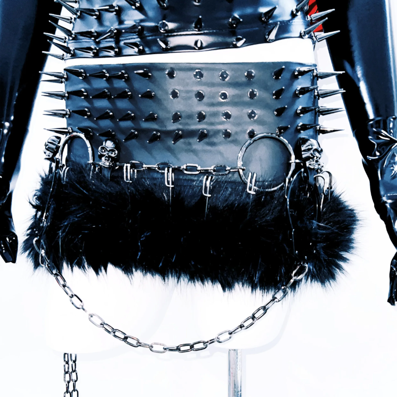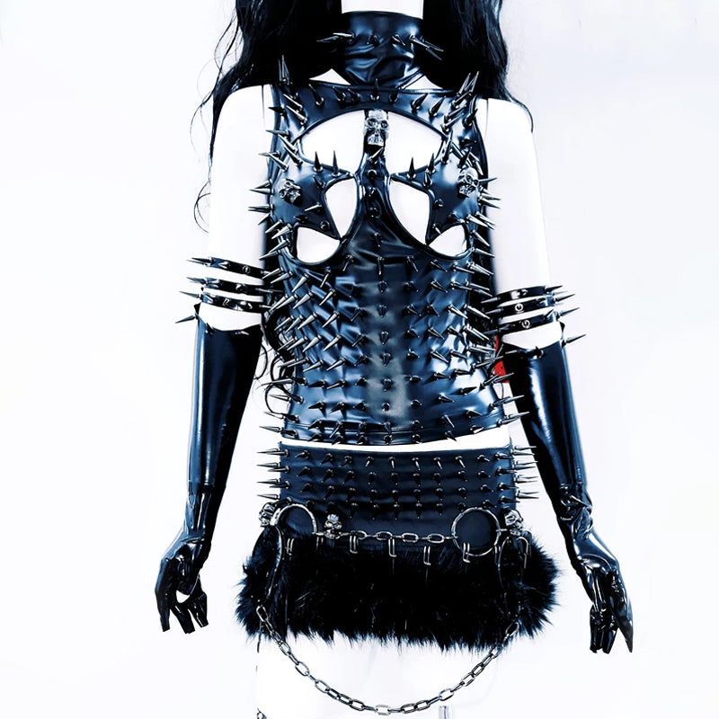 High neck hollow out PU leather rivet applique cut out top | Festival