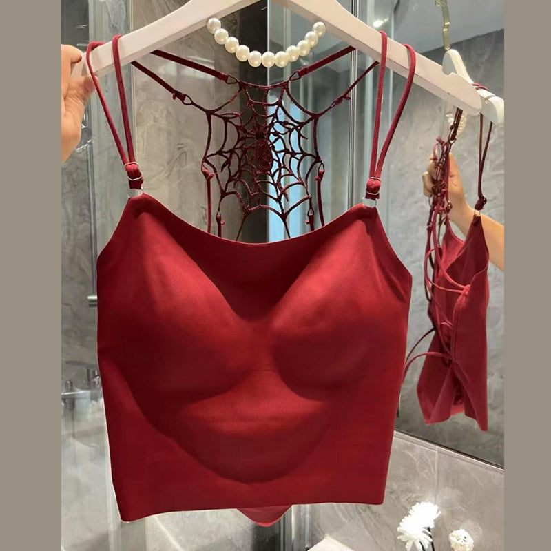 Leopard print spider web backless padded top | Festival Outfits Women