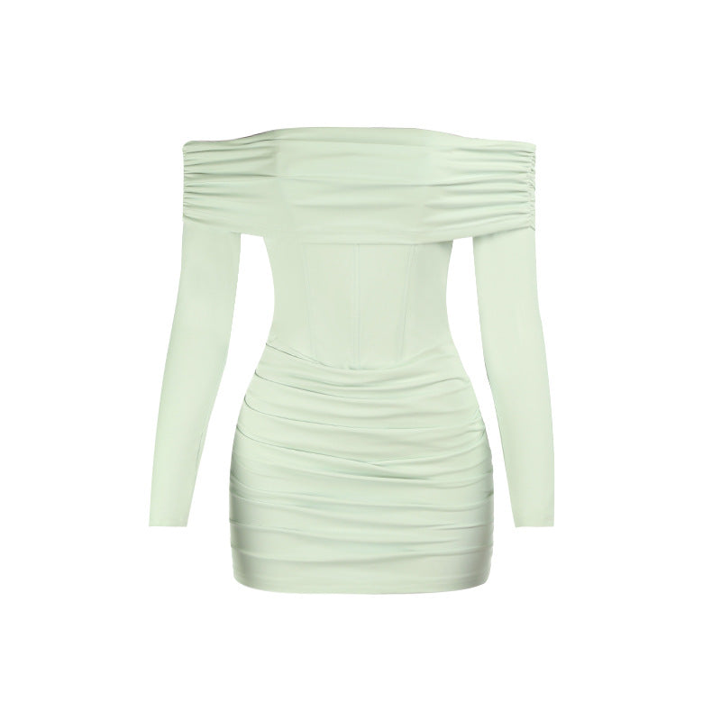 Off shoulder long sleeve ruched tube mini dress | Festival Outfits Women