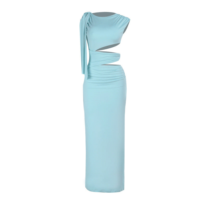 Crewneck hollow out irregular ruched cut out maxi dress | Festival Outfits Women