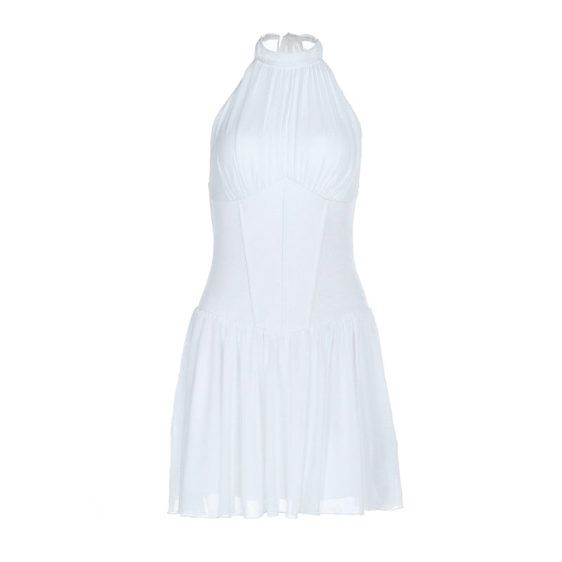 Halter self tie ruched backless solid mini dress | Festival Outfits Women