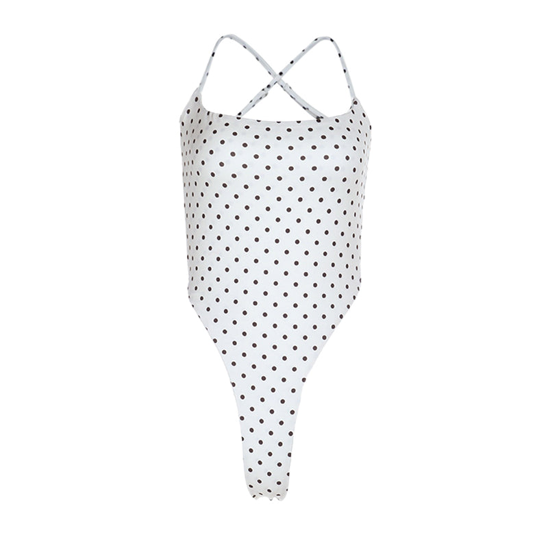 Polka dot u neck cross back backless cami bodysuit | Festival Outfits Women