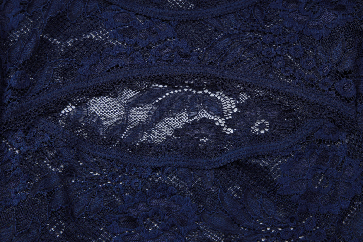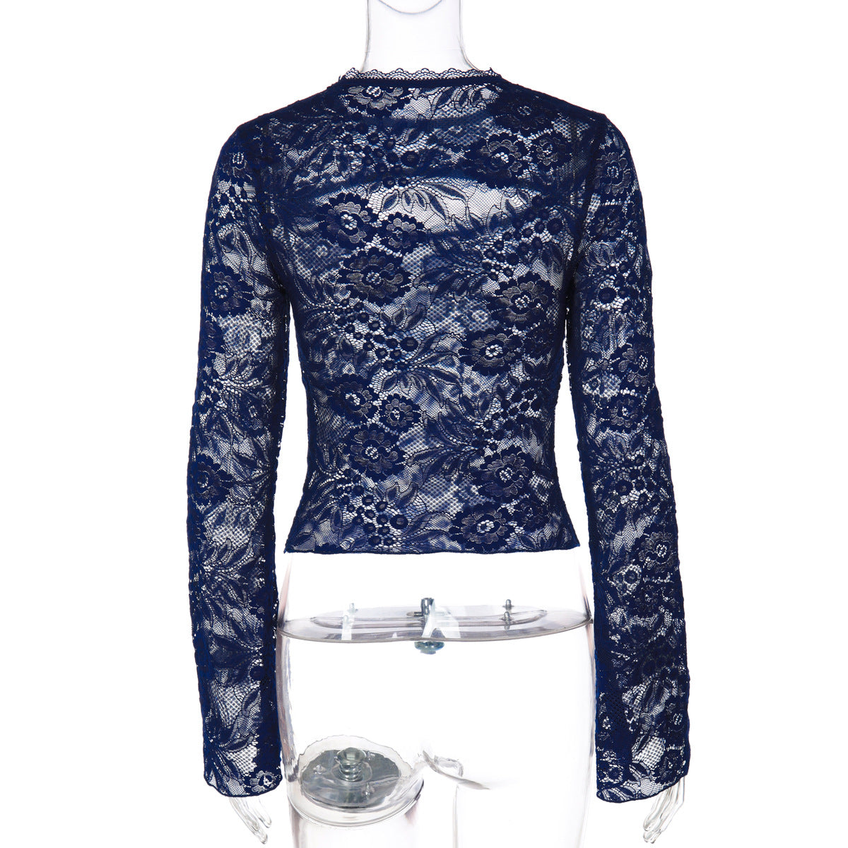 Lace hollow out long sleeve see through top