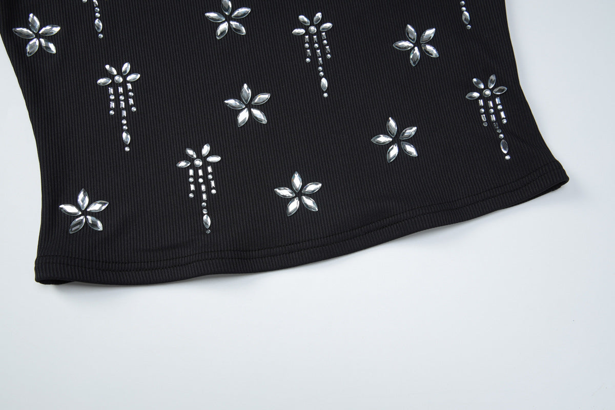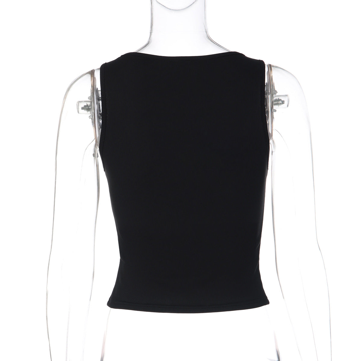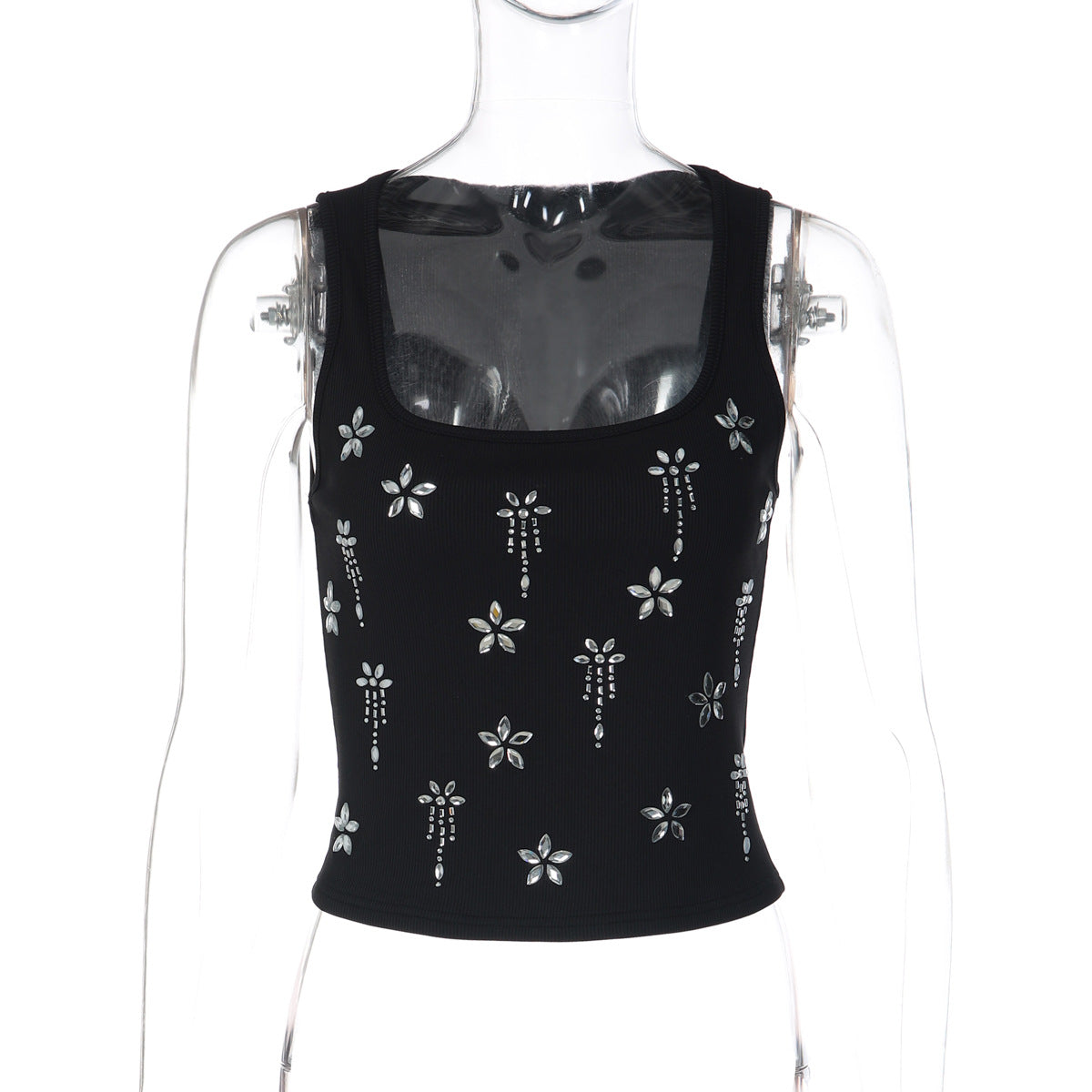Square neck ribbed beaded sleeveless top