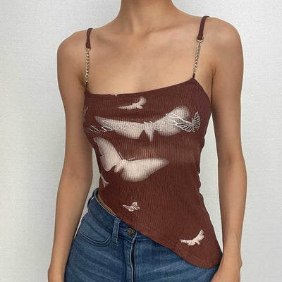 Leopard print beaded patchwork v neck backless cami top