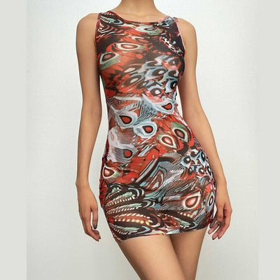 Backless metal chain glitter tie dye contrast ruched mini dress
