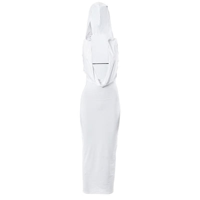 Drawstring hoodie sleeveless solid slit high neck midi dress